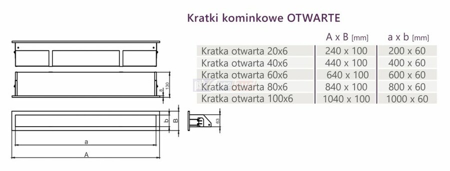 Kratki kominkowe w wersji otwartej, wykonano z elementów stalowych dostosowanych w procesie technologicznym. Pokryte są odporną termicznie oraz mechanicznie farbą proszkową.  Kratki zostały wyposażone w system sprężyn dociskowych, dzięki czemu montaż jest łatwy oraz szybki.