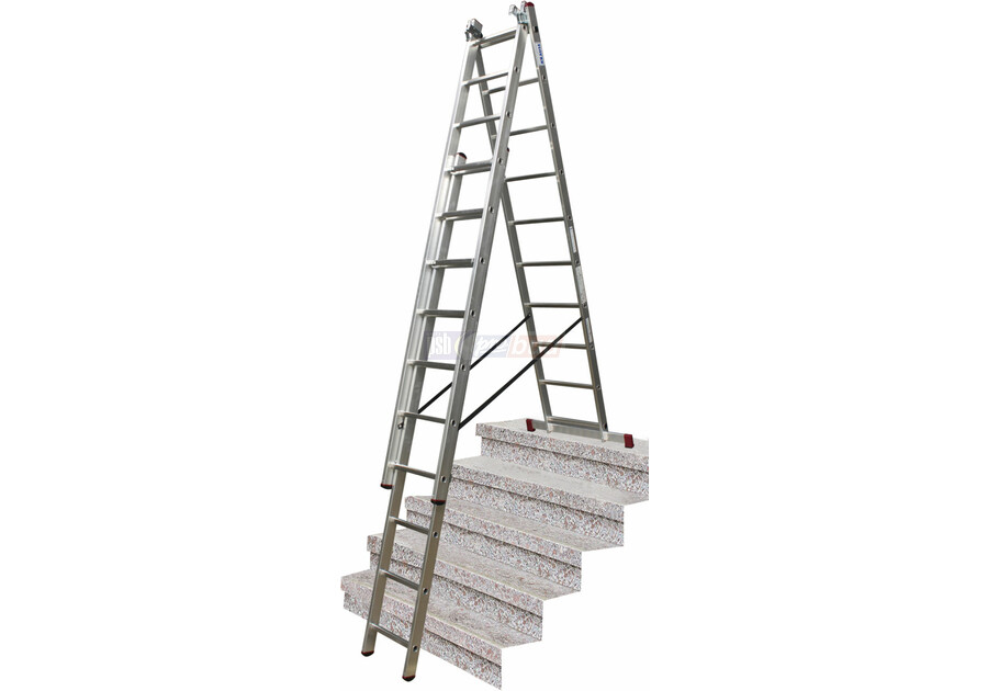 Trzyelementowa drabina wielofunkcyjna. Do zastosowania jako drabina rozsuwana, przystawna oraz wolnostojąca.