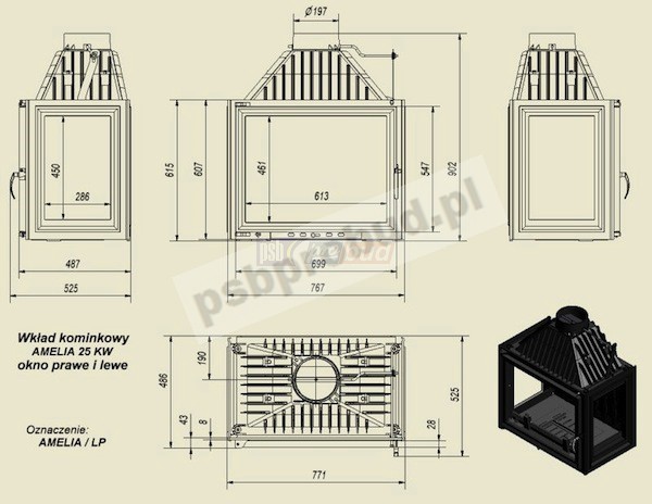 Wkład kominkowy Amelia 25 kW 3 szyby Zaletą wkładu jest korpus wykonany z żeliwa szarego klasy 200, o minimalnej grubości ścianki 8 mm. Gęsto rozmieszczone radiatory, zwiększające powierzchnię wkładu, czyli obszar, którym oddawane jest ciepło do otoczenia. Posiada wbudowany ...