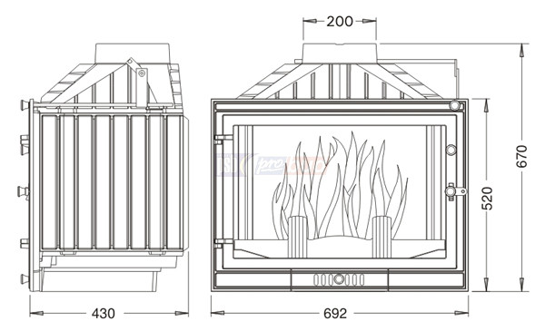 Wkład kominkowy UNIFLAM 700 STANDARD z szybrem oraz dolotem powietrza