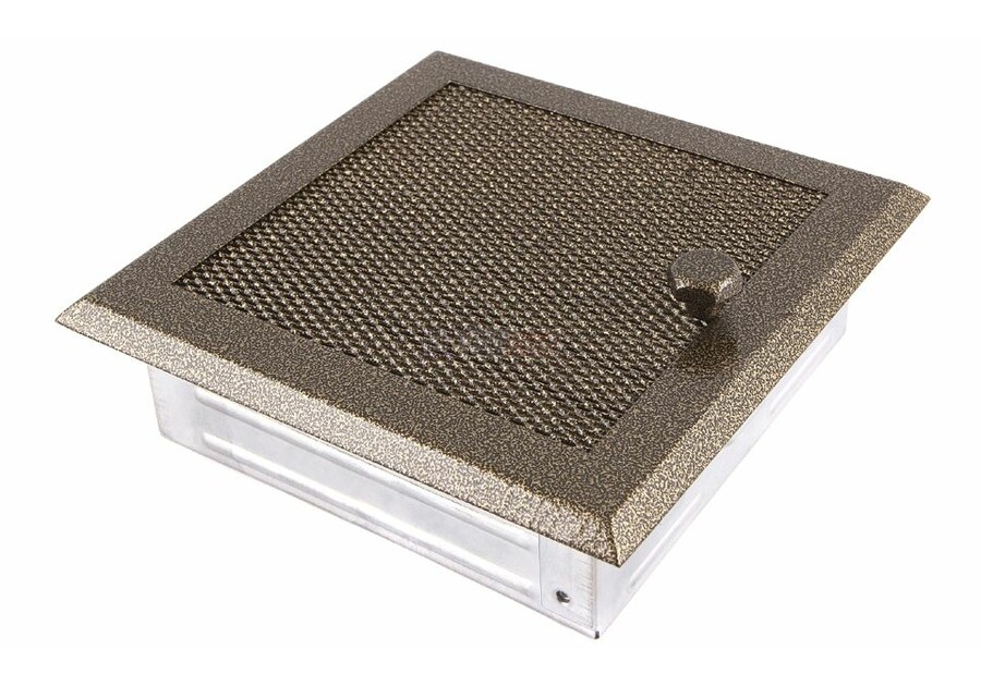 Kratka kominkowa 16x16 cm z żaluzją - kolor: stare złoto Kratka kominkowa – przeznaczona do nawiewu ciepłego powietrza w sposób grawitacyjny lub wymuszony, a także do nawiewu lub wywiewu powietrza wentylacyjnego. Wykonana jest z elementów stalowych odpowiednio przygotowanych w ...