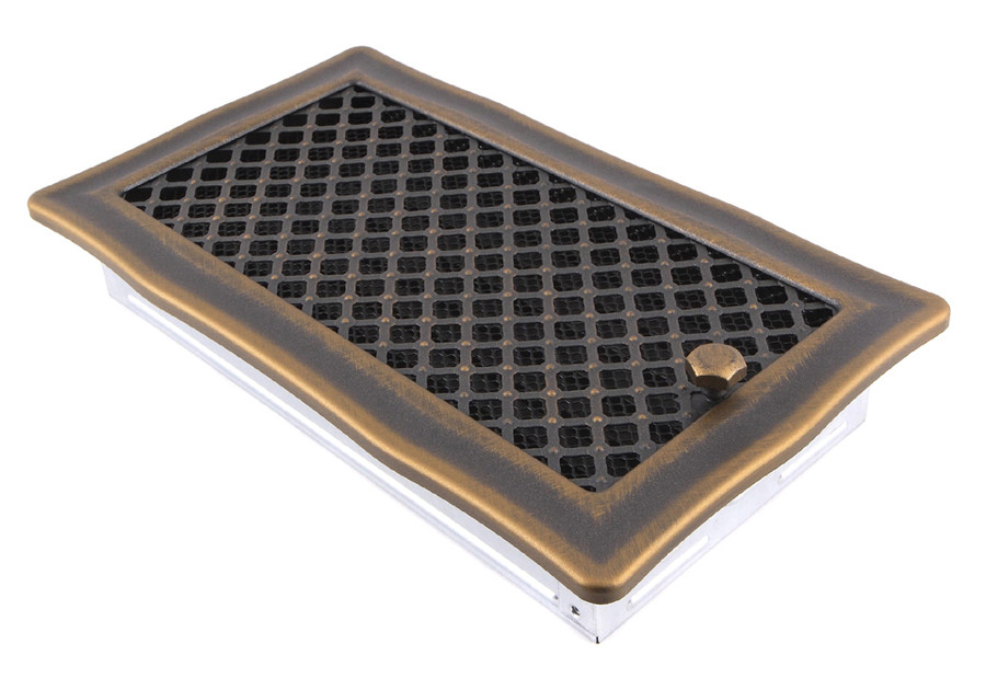 Kratka kominkowa DECO 16x32cm z żaluzją złota patyna - kolor: złota patyna Kratka kominkowa – przeznaczona do nawiewu ciepłego powietrza w sposób grawitacyjny lub wymuszony, a także do nawiewu lub wywiewu powietrza wentylacyjnego. Wykonana jest z elementów stalowych ...