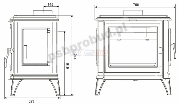 popielnik. Piec posiada ruszt. Przedni oraz boczny załadunek drewna.