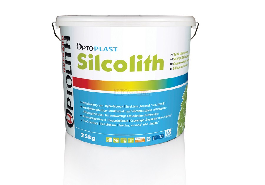 TYNK SILIKONOWY OPTOPLAST SILCOLITH 25kg -BAZA barwniki wyceniane indywidualnie Podana cena dotyczy jednego wiaderka tynku OPTOPLAST SILCOLITH Tynk silikonowy, faktura „kamyczkowa”, ziarno 1,5 mm Dekoracyjny tynk cienkowarstwowy do stosowania na zewnątrz i ...