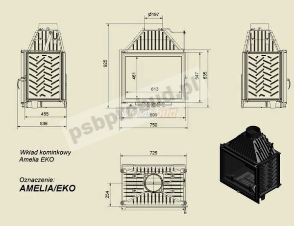 Zaletą wkładu jest korpus wykonany z żeliwa szarego klasy 200,o minimalnej grubości ścianki 8 mm.Front wkładu wykonany z blachy kotłowej o grubości 4mm, przeznaczonej do pracy w podwyższonych temperaturach. Gęsto rozmieszczone radiatory, zwiększające powierzchnię wkładu,czyli obszar, którym oddawane jest ciepło do otoczenia. Wbudowany został szyber, który pozwala na regulację ciągu komina oraz deflektor, który wydłuża drogę spalin. W drzwiczkach zamontowana jest ceramika żaroodporna wytrzymująca temperaturę do 800oC.  Regulacja dopływu powietrza poprzez popielnik.System dopalania spalin, który ograniczna emisję szkodliwych substancji do środowiska oraz podnosi sprawność wkładu. Gwarancja 5 lat.