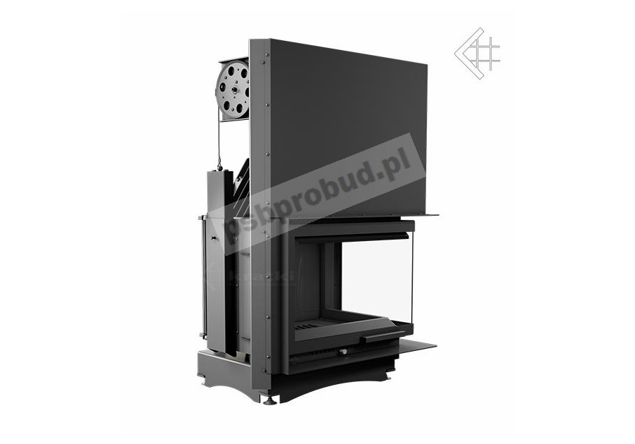 Wkład kominkowy Zuzia 16 kW gilotyna,prawa boczna szyba (łączona bez szprosa).